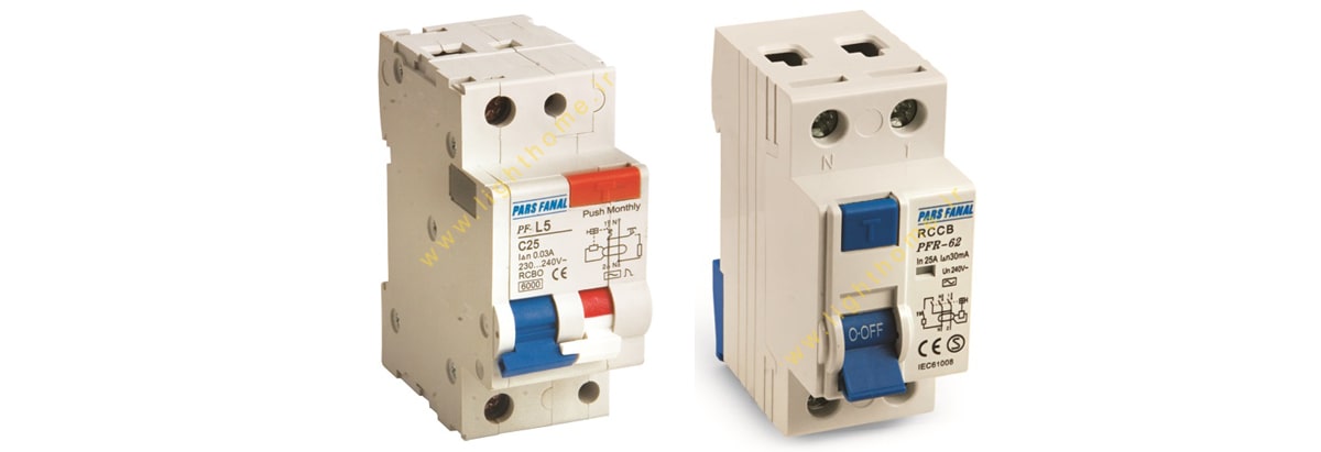 - کلید محافظ جان ترکیبی پارس فانال PFL6 مدل الکترونیکی با جریان نامی تا 63 آمپر و قدرت قطع 4.5KA