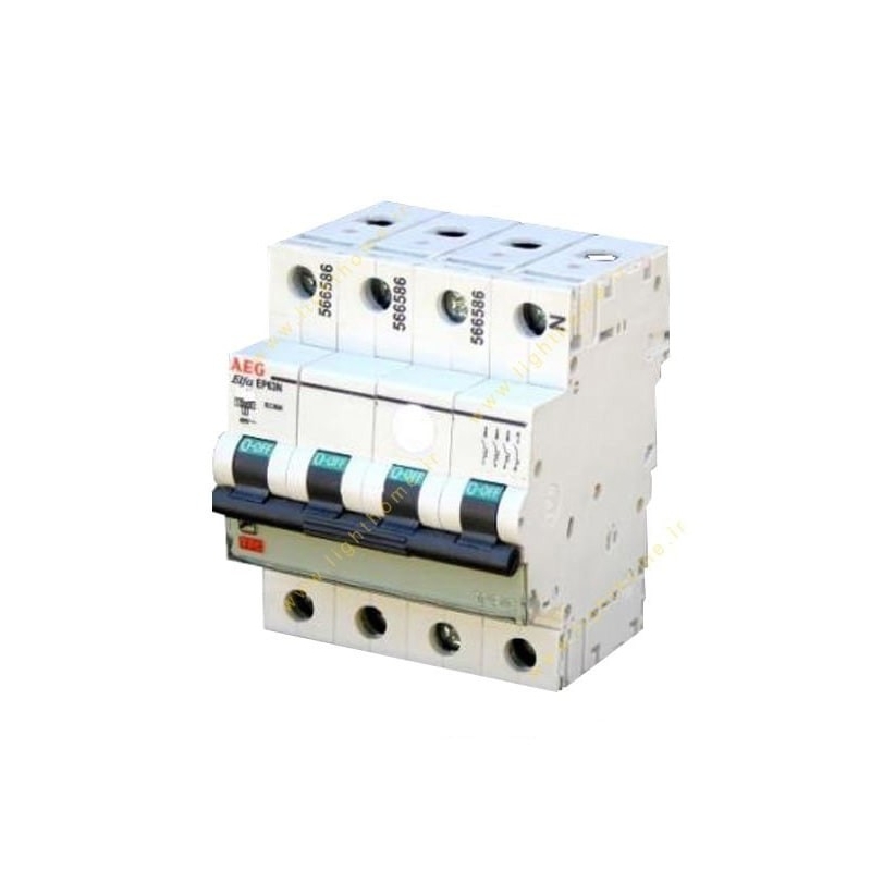کلید مینیاتوری AEG سه فاز و نول 6 کیلو آمپر 6 تا 40 آمپر - چهار پل – جریان نامی 6 تا 40 آمپر – قدرت اتصال کوتاه 6 کیلو آمپر - دو نوع B یا روشنایی و C یا موتوری