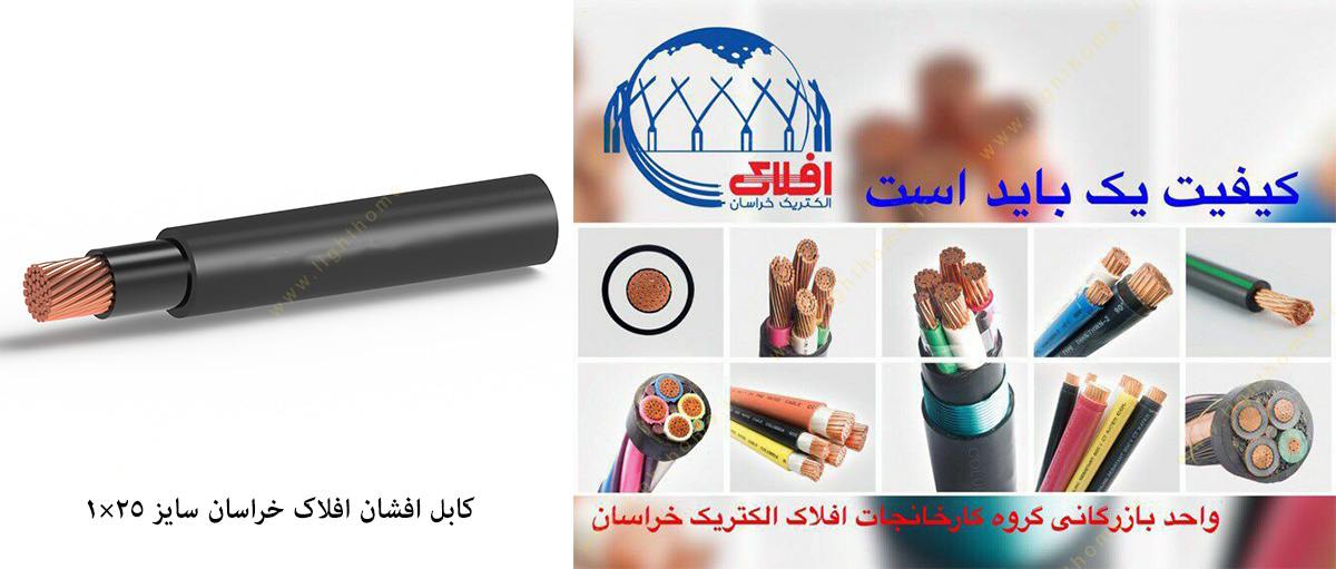 کابل افشان افلاک خراسان سایز 25×1 به عنوان یک کابل افشان قدرت در صنعت برق ایران کاربرد بسیاری دارد که با ولتاژ نامی 600 تا 1000 ولت برای انتقال جریان برق در ولتاژهای بالا و فشار قوی استفاده می شود و در داخل تابلو برق ها، فضای داخل ساختمان، فضای آزاد، بر روی سینی کابل، درون کانال، زیر زمین و تعبیه مستقیم در زیر خاک نصب می گردد البته ناگفته نماند که در زمان نصب این محصول به طور مستقیم در زیر خاک باید توجه نمود که احتمال آسیب و تنش مکانیکی به کابل وجود ندارد. سیم و کابل افلاک در مدل ها و سایزهای متفاوت تولید شده اند که تمامی مراحل ساخت این محصولات مطابق با استانداردهای جهان اروپا و ملّی ایران انجام شده است و به دلیل تعبیه فلز رسانا و مرغوب مس یا آلومینیوم در ساختار هادی ها تمامی سیم و کابل های افلاک رسانای بالای جریان برق هستند و در بسیاری از پروژه های انتقال جریان برق و اطلاعات مخابراتی و شبکه ای استفاده می شوند.