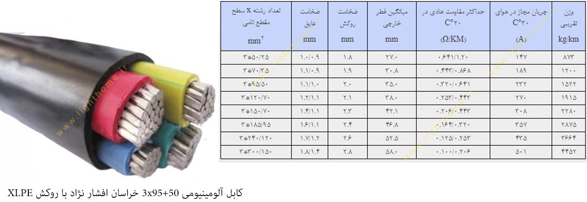 شما می توانید پس از بررسی های لازم و کسب اطلاعات مورد نیاز خود در خصوص خرید کابل آلومینیومی 3x95+50 خراسان افشار نژاد با روکش XLPE و یا اطلاع از قیمت کابل آلومینیومی 3x95+50 خراسان افشار نژاد با مراجعه به سایت لایت هوم و یا تماس با بخش فروش ما، خرید خود را به راحتی انجام دهید.