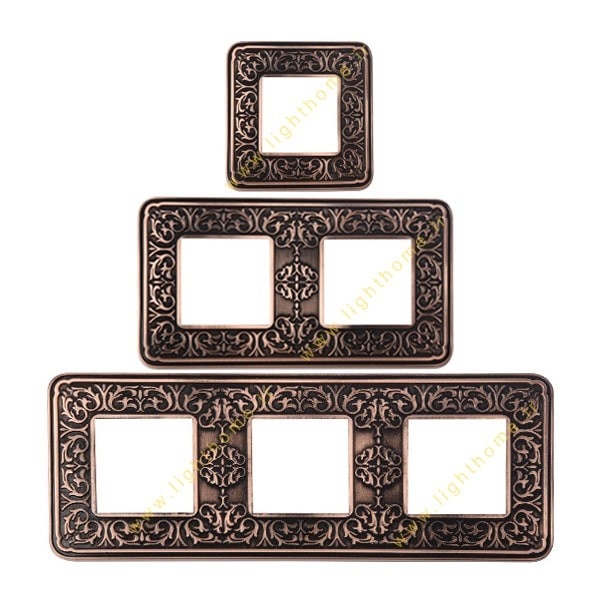 کلید و پریز آنتیکو سری Fiore با کادر رز گلد مسی (سیاه قلم) - دارای کادر رز گلد مسی (سیاه قلم) - مکانیزم لگراند فرانسه - رنگ رویه سفید، طلایی، زیتونی روشن، زیتونی مات و رزگلد - دارای کادرهای تک خانه، دو خانه و سه خانه قابل استفاده جهت ایجاد یکپارچگی - نصب به صورت توکار - دارای گارانتی 20 ساله آبکاری