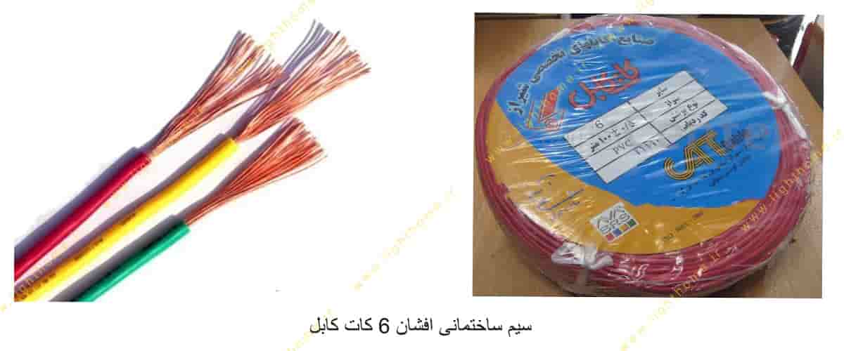 سیم ساختمانی افشان 6 کات کابل - استاندارد ISIRI (607)02-ISIRI (607)06-BS6004-VDE 0250 - رنگ محصول مشکی، آبی، قهوه ای، زرد، سبز، سفید و غیره با توجه به نیاز مشتری - کاربری جهت اتصالات وسایل برقی متحرک، مدارهای روشنایی و قابل نصب در داخل لوله های برق - بسته بندی به صورت کلاف های 100، ۲۰۰ و یا ۵۰۰ متری