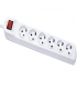 سیم رابط 6 خانه مستطیل ارت دار نمودار کنترل مدل R106A در دو رنگ بدنه مشکی و سفید موجود است و ساخت آن با بدنه ای از جنس پلی کربنات در اندازه های 5×6×41 سانتی متر مکعب، کلید قرمز رنگ ON/OFF، سیم 3 متری و چهار پریز ارتدار انجام شده است که به دلیل دارا بودن خروجی ارتدار تمامی نشتی ها و اختلالات جریان برق به چاه ارت منتقل شده و از ایجاد برق گرفتگی افراد و آتش سوزی جلوگیری می نماید. محصول ذکر شده از توان خروجی 3500 بهره مند است به همین دلیل برای تمامی لوازم برقی قابل استفاده می باشد و افراد می توانند بدون نگرانی و دغدغه بابت خرابی وسایل برقی آنها را به سیم رابط مورد نظر وصل کنند.