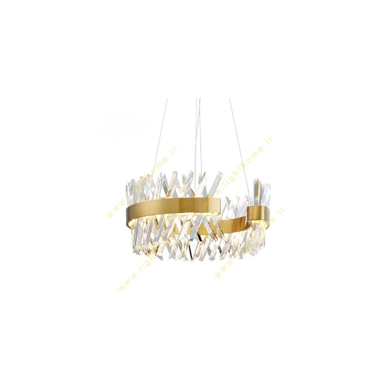 لوسترکریستالی – مدل گرد – رنگ بدنه طلایی – نوع لامپ SMD– دارای آویز خطی به طول ۹۵ سانتیمتر