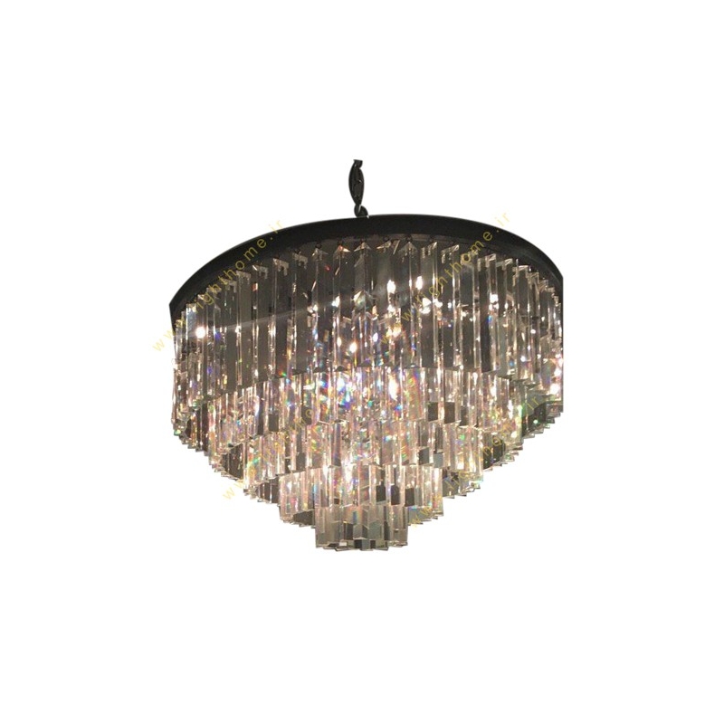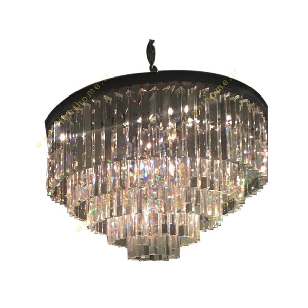 لوستر 5 طبقه مدل 6101 - دارای 5 ردیف کریستال – بدنه فلزی - نوع سرپیچ شمعی (E14)– جنس سرپیچ سرامیکی – اندازه 60 سانتیمتر