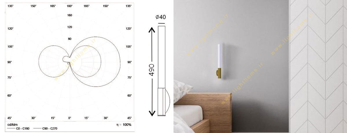 چراغ دیواری دکوراتیو لولایت کد W260 بدون لامپ قابل استفاده با لامپ هالوژنی رنگ بدنه چوبی ابعاد بیرونی 80x250 میلی متر  نصب دیواری طراحی زیبا و مدرن