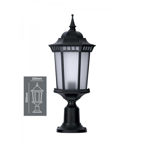 چراغ سردری حیاطی شفق مدل دیاموند 6014 جنس بدنه آلومینیوم دایکاست رنگ پودری الکترواستاتیک رنگ بدنه مشکی، سفید و مسی ایستاده سرپیچ E27 درجه حفاظت IP44