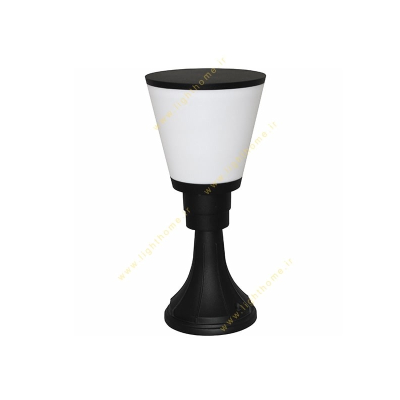 چراغ سردری حیاطی شفق مدل باربد 3103 جنس بدنه آلومینیوم دایکاست رنگ پودری الکترواستاتیک رنگ بدنه مشکی، سفید و مسی ایستاده سرپیچ E27 درجه حفاظت IP44