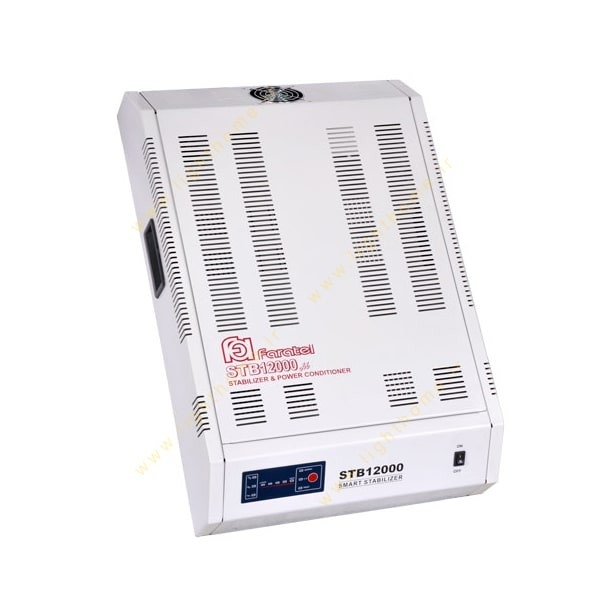 استابلایزر فاراتل مخصوص تجهیزات برقی منازل مدل STB 12000M برای استفاده در تجهیزات برقی ساختمان و منازل می باشد و می تواند به بهترین شکل از دستگاه ها و لوازم برقی در برابر اختلالات و نوسانات برق جلوگیری کرده و به خوبی محافظت نماید. این ترانس اتوماتیک مجهز به فیلتری جهت جلوگیری از نویز موجود در برق شهری بوده و با حذف آن مانع از اختلال در عملکرد دستگاه های مصرف کننده می شود و سبب ایجاد برقی بدون پارازیت و تثبیت شده، که جهت استفاده برای دستگاه های خروجی مناسب می باشد. در صورتیکه مصرف کننده لامپ باشد، این عمل تثبیت ولتاژ در هنگام نوسان برق شهر، بصورت کم و یا زیاد شدن نور لامپ می باشد.