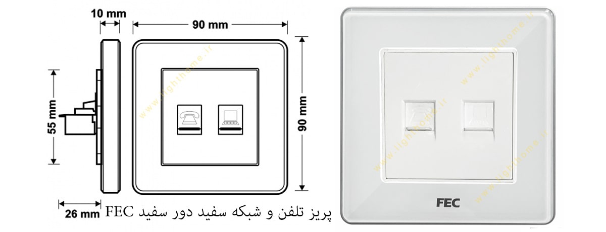 پریز تلفن و شبکه سفید FEC از کیفیت بالا و ظاهری زیبا برخوردار بوده که امکان استفاده به پریز را در محیط های مختلف می دهد. این پریز FEC قابلیت استفاده از کابل شبکه و تلفن را در کنار هم و در یک قاب داشته که از پریز اضافی در محیط جلوگیری کرده و منجر به نظم بیشتر دیوار و محیط شما می شود. نصب این پریزها راحت بوده و نیاز به تغییر در ساختار قاب و سیم کشی قدیمی پریزها نداشته و بر روی بستر سنتی آن می توانید پریز را نصب کنید. این محصول بصورت ضد خش می باشد که کیفیت بالایی داشته و از آسیب به ساختار پریز جلوگیری کرده و امکان نصب آن را در فضاهای مختلف می دهد. این پریزها با کلیدهای لمسی هوشمند کریستال سفید FEC قابلیت هماهنگی داشته و می توانید به راحتی آن را با یکدیگر ست نمایید.