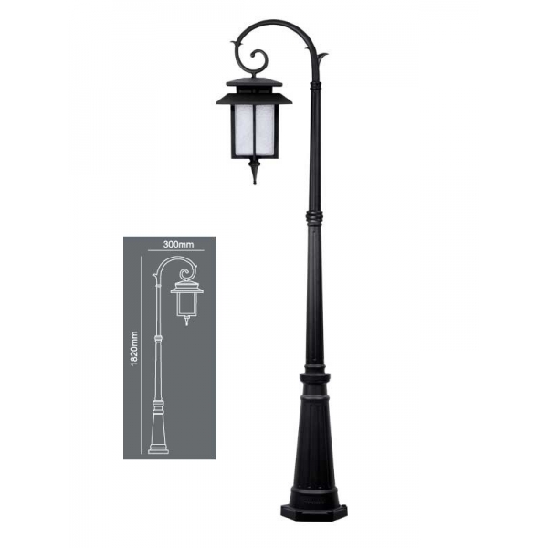 چراغ حیاطی دوستان مدل ورساچه 80 سانت جنس بدنه فلز  حباب پلاستیک نوع سرپیچ E27 ارتفاع 80 سانت رنگ بدنه مشکی استاتیک کوره ای مقاوم در برابر باد، باران، رطوبت، گرما و برف