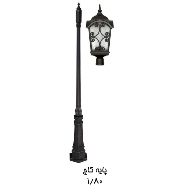 چراغ سرلوله حیاطی شفق مدل کیان جنس بدنه آلومینیوم دایکاست و آهن رنگ پودری الکترواستاتیک رنگ بدنه مشکی ایستاده ابعاد بیرونی 260x32 سانتی متر سرپیچ E27 درجه حفاظت IP44