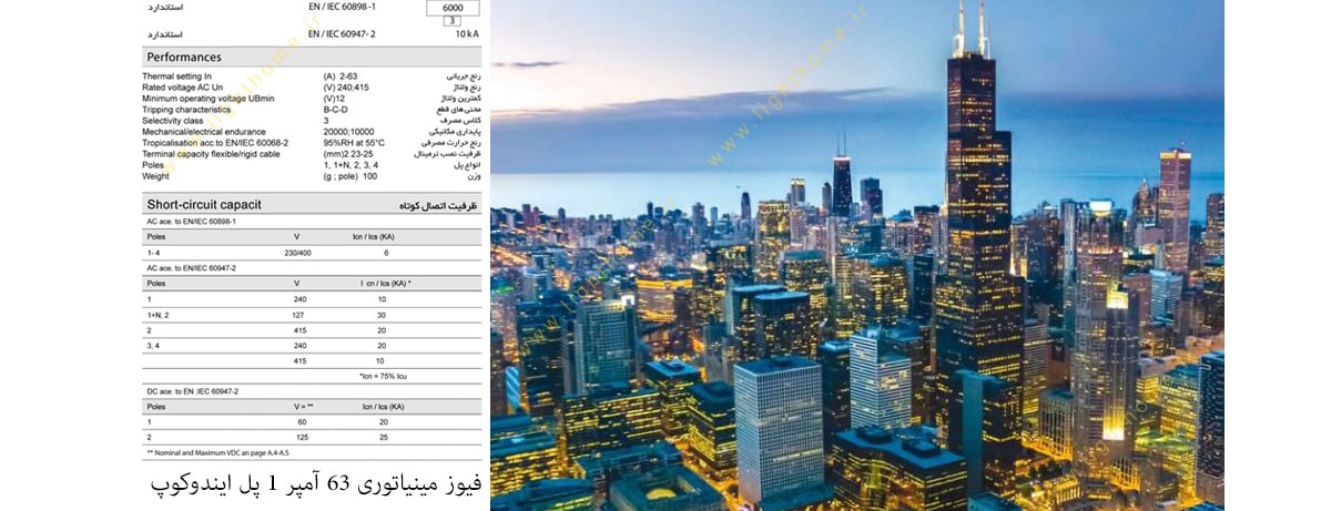 فیوز مینیاتوری 63 آمپر 1 پل ایندوکوپ سری سیلور پلاس دارای قابلیت حداکثر جریان 6 کیلو آمپر می باشد و ولتاژ آن نیز در رنج 240 تا 415 ولت قرار دارد. این فیوز مینیاتوری بصورت تک پل شده و در مدل های دو، سه و چهار پل نیز عرضه شده است که شما می توانید بسته به نیاز خود هر کدام از آنها را انتخاب نمایید. کلیدهای مینیاتوری دارای استاندارد جهانی می باشد که این مدل به همراه استاندارد بین المللی EN/IEC60898-1 و EN/IEC60947-2 عرضه می شود. این کلید دارای جریان نامی 63 آمپر است که به حداکثر جریان قابل عبور از فیوز گفته می شود و از همین مدل در تنوع بالایی از جریان تولید شده است. کلیدهای مینیاتوری از آنجاییکه وظیفه حفاظت از مدار را در مقابل جریان اضافه بار و اتصال کوتاه دارند، در تنوع زیادی از تیپ عرضه شده که این مدل نیز شامل سه تیپ B، C و D است و در هنگام خرید از سایت می توانید به راحتی هر کدام را انتخاب نمایید.