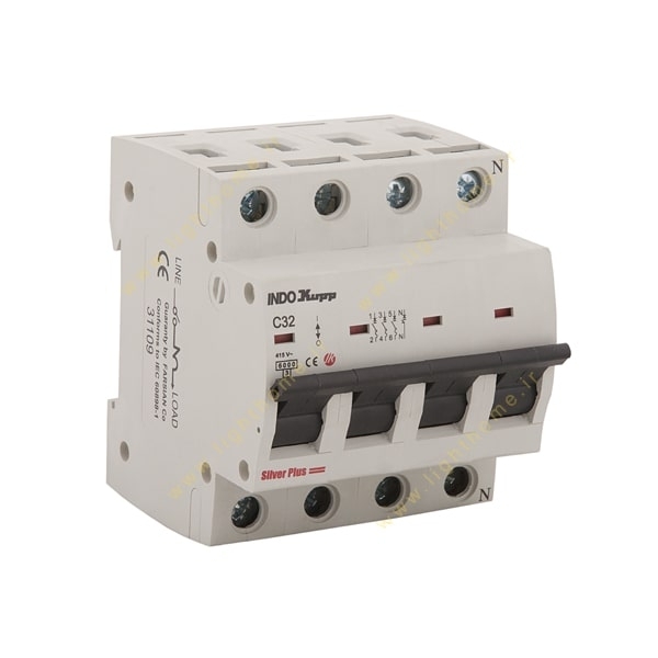 فیوز مینیاتوری 32 آمپر 2 پل فاز و نل ایندوکوپ سری سیلور پلاس جریان 32 آمپر 2 پل حداکثر جریان 6 کیلو آمپر  محافظ مدار در برابر اتصال کوتاه و جریان اضافه بار تیپ B، C و D استاندارد بین المللی EN/IEC60898-1 و EN/IEC60947-2