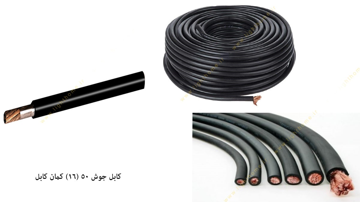کابل جوش 50 (16) کمان کابل با هادی تمام مس انعطاف پذیر و روکش مقاوم و متناسب با نوع کاربری از جنس TPR با قابلیت انعطاف پذیری بالا، جذب کم آب، مقاومت مناسب در برابر انواع مواد شیمیایی، روغن ها و سایر عوامل محیطی در اندازه های مشخص مطابق استانداردهای ملّی ایران و جهان اروپا در شرکت کمان کابل توسط مهندسین و تکنسین های باتجربه ساخته شده است. کابل جوشکاری سایز 16 کمان با سایز 50×1 میلی متر مربع و نشان استاندارد 245IEC (1926)81 یا ISIRI (1926) 81 به بازار سیم و کابل های داخلی و خارجی عرضه می گردد و برای جوشکاری با قوس الکتریکی مناسب می باشد و ناگفته نماند برای این نوع کابل ها که منحصرا به منظور جوشکاری در نظر گرفته شده اند ولتاژ نامی تعیین نشده است.