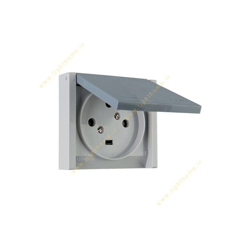 پریز برق سه فاز چهار شاخ لگراند مدل Plexo - درجه حفاظت IP44 - پریز 3P+E - ولتاژ 400 ولت - رنگ بدنه خاکستری - جریان 20 آمپر - عرضه به صورت توکار و قابل نصب به صورت روکار با قوطی روکار پلکسو