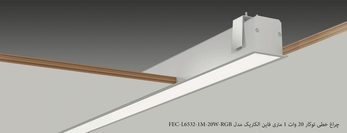 چراغ خطی توکار 20 وات 1 متری فاین الکتریک دارای قابلیت استفاده در محیط های بزرگ می باشد و از سری چراغ های با نوردهی زیاد است. این چراغ خطی دارای لامپ SMD در ساختار خود می باشد که این لامپ ها مصرف انرژی کم و نوردهی بالایی داشته و این نور فاقد اشعه ایکس و مادون قرمز می باشد، در نتیجه منجر به خستگی و خیرگی چشم نمی شود. از این چراغ در محیط هایی مانند شرکت ها، مجتمع های تجاری، اداره ها و سالن های ورزشی استفاده شده و نوردهی بالایی دارد. نصب چراغ بصورت توکار می باشد که نیاز به ایجاد حفره ای در داخل سقف داشته تا چراغ را به کمک پایه های متصل شده به بدنه آن، محکم نمایید.