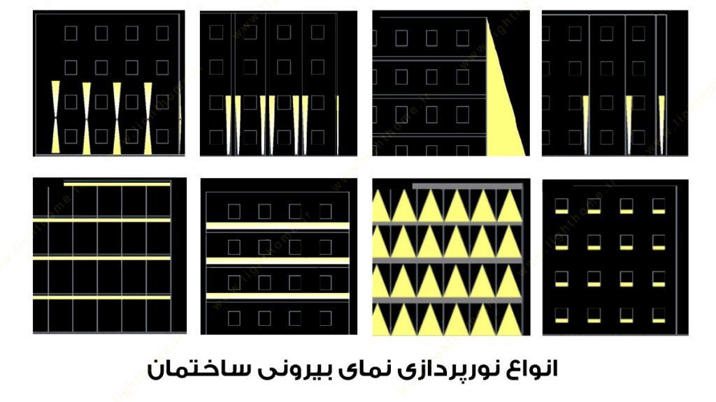 • جزئیات معماری : روشن کردن جزئیات و بافت های پیچیده ای که ممکن است نور پردازی نمای ساختمان در شرایط معمولی نادیده گرفته شوند.