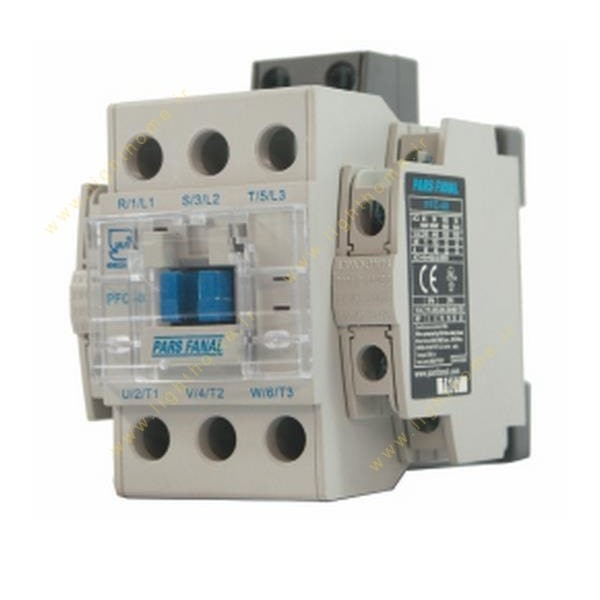 کنتاکتور سه پل پارس فانال - سه پل - ولتاژ بوبین بین 24 الی 380 - جریان نامی 40 آمپر - کنتاکت کمکی 1 باز 1 بسته - دارای استاندارد IEC 60947