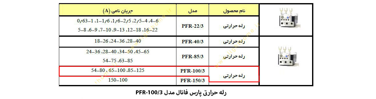 رله حرارتی پارس فانال - جریان نامی 54-80, 65-100, 85-125 آمپر - دارای استاندارد IEC 60947