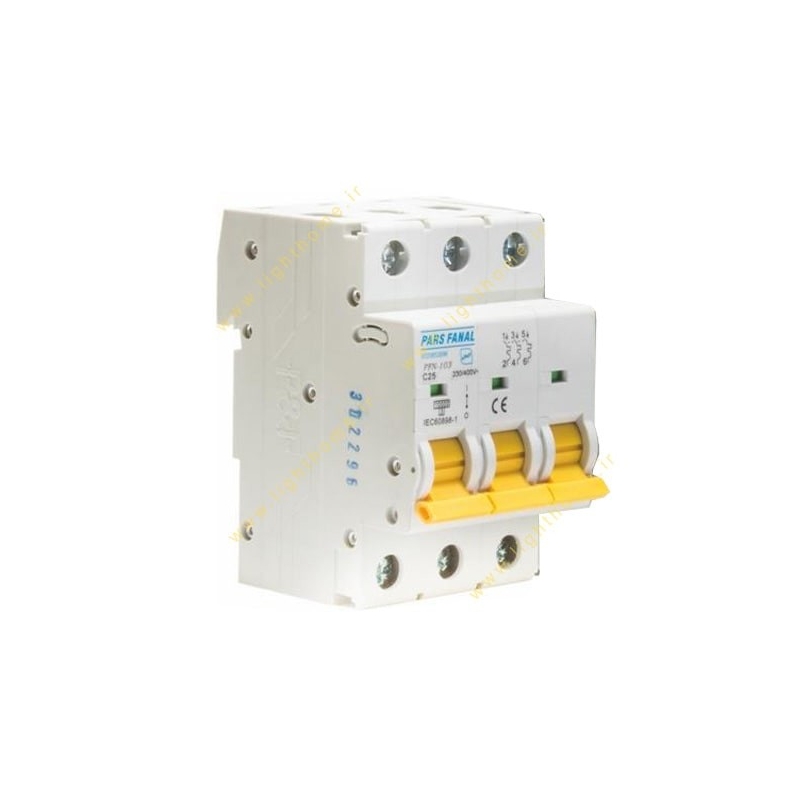 کلید مینیاتوری 20 آمپر سه پل پارس فانال مدل PFN-3P - سه پل - جریان نامی 20 آمپر - دارای استاندارد IEC 60898 - دو سال ضمانت