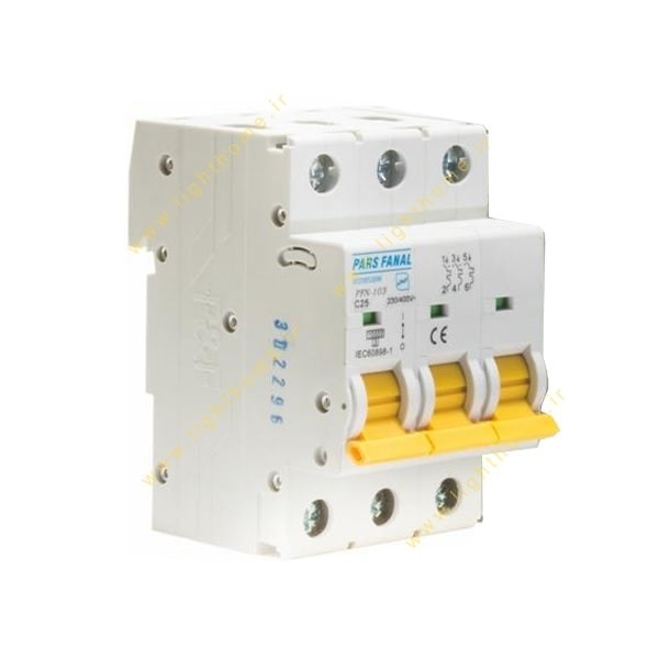 کلید مینیاتوری 40 آمپر سه پل پارس فانال مدل PFN-3P - سه پل - جریان نامی 40 آمپر - دارای استاندارد IEC 60898 - دو سال ضمانت