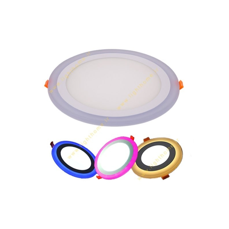 پنل سه حالته توکار دایره ای شکل 6+18 وات پارس شهاب - زاویه تابش 110 درجه - طول عمر 25000 ساعته - ولتاژ 230 ولت - دو رنگ نوری آفتابی و مهتابی در داخل و چهار رنگ نوری آبی، مهتابی، صورتی و مهتابی در اطراف - شار نوری 1600 لومن - گارانتی 18 ماهه
