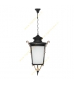 چراغ آویز حیاطی شفق مدل سورنا 6029 جنس بدنه آلومینیوم دایکاست رنگ پودری الکترواستاتیک رنگ بدنه مشکی، سفید و مسی آویز سرپیچ E27 درجه حفاظت IP44