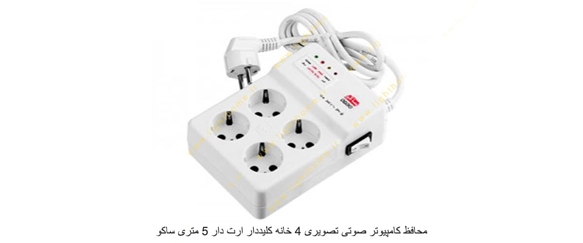 محافظ کامپیوتر صوتی تصویری 4 خانه کلیددار ارت دار 5 متری ساکو - 10 سال خدمات پس از فروش - با گارانتی یک ساله شرکت ژرفانور پویا - مناسب برای کامپیوتر یا صوتی تصویری - مقرون به صرفه - دارای طول عمر بالا - محافظ 4 خانه آنالوگ - مقاوم در برابر ضربه