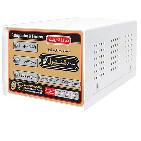 محافظ یخچال و فریزر فلزی 2 خانه ارت دار نمودار کنترل مدل M108 با سیم 4 متری از سری محصولات جدید و به روز شرکت نمودار کنترل است که برای محافظت از لوازم برقی آشپزخانه مثل : یخچال، فریزر، ماشین لباس شویی و ... در برابر ولتاژهای غیرعادی و اختلالات جریان برق شهری استفاده می شود و از سوختن و خرابی دستگاه های الکتریکی جلوگیری می کند. محصول ذکر شده در دو مدل جداگانه با سیم 1.5 متری و سیم 4 متری موجود است که تمامی مشخصات فنّی و کاربری این دو محافظ برق مشابه می باشند و تنها تفاوت آنها در متراژ سیم است که بر اساس نوع سفارش و نیاز مشتری تعیین شده و به همراه دیگر محصولات روشنایی، لوازم جانبی برقی و مدل های مختلف محافظ های برق نمودار کنترل از سایت معتبر لایت هوم با قیمت مقرون به صرفه و اقتصادی به فروش می رسند. محافظ یخچال و فریزر فلزی 2 خانه ارت دار نمودار کنترل مدل M108 با سیم 4 متری، بدنه ای از جنس فلز مقاوم و مرغوب، دو پریز ارتدار، سه لامپ ال ای دی و دیگر مواد اولیه باکیفیت تشکیل شده است و با توان خروجی 2500 وات، آمپر 10، مدّت زمان تاخیر 5 دقیقه، 2 عدد خروجی و 36 ماه گارانتی معتبر در اختیار مصرف کننده قرار می گیرد.