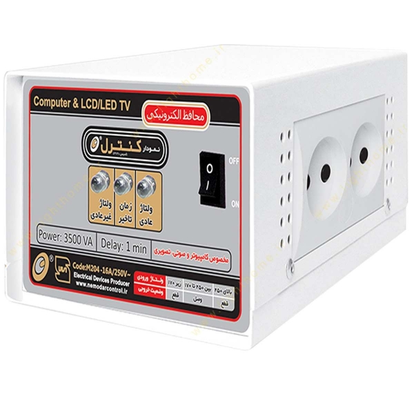 همان طور که از اسم و تصویر محافظ برق کامپیوتر فلزی 6 خانه نمودار کنترل مدل M204 با سیم 1.5 متری مشخص می باشد این محصول دارای بدنه ای از جنس فلز و شش پریز ساده بدون ارت است که امکان اتصال شش وسیله برقی و الکتریکی را فراهم می کند و افراد می توانند لوازم صوتی و تصویری، کامپیوتر و تجهیزات جانبی برقی تعبیه شده در محل زندگی یا فضای کاری خود را به این محافظ برق وصل نمایند و از آنها در برابر قطع ناگهانی برق و افزایش یا کاهش جریان و ولتاژ برق شهری محافظت کنند. محصول مذکور از توان خروجی 3500 وات، زمان تاخیر 1 دقیقه و آمپر 16 برخوردار است و در صورتی که ولتاژ ورودی آن کمتر از 170 یا بیشتر از 250 ولت شود جریان برق شهری را قطع می کند و بعد از ایده آل شدن ولتاژ و جریان برق شهری با یک دقیقه تاخیر جریان برق را وصل می نماید.