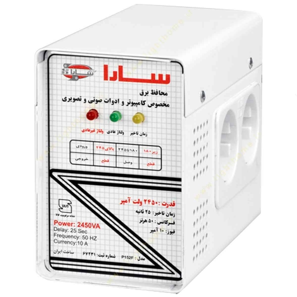 محافظ برق 2450 ولت آمپر فلزی مدل P152F سارا برای حفاظت از کامپیوترها و لوازم برقی صوتی و تصویری مانند : تلویزیون و سینمای خانگی در برابر نوسانات ولتاژ برق، شوک های احتمالی و قطع و وصل برق بر اثر عوامل مختلف استفاده می شود و با قرار گرفتن بین پریز برق شهری و دستگاه های مصرف کننده متصل به خودش از آنها محفاظت می نماید. گرووه صنعتی سارا از سال 1359 تا به امروز در عرصه ی طراحی و تولید انواع گوناگون محافظ برق و تجهیزات الکتریکی و الکترونیکی فعالیت می کند و به مرور زمان با بکارگیری برترین تکنولوژی های روز دنیا، ماشین آلات نوین صنعتی و تعبیه مواد اولیه مرغوب اقدام به تولید و ارائه ی محصولات درجه یک و باکیفیت در مدل های متنوع کرده است که علاوه بر بازار ایران به دیگر کشورها نیز صادر می شوند و دارای نشان استاندارد ملّی از سازمان استاندارد و تحقيقات صنعتی ايران می باشند.