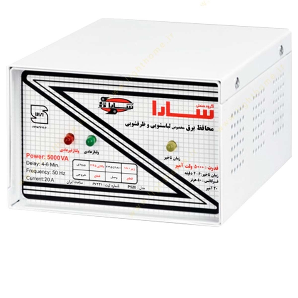 محافظ برق فلزی 5000 ولت آمپر مدل P520 سارا از یخچال و فریزر، ماشین لباسشویی، ماشین ظرف شویی و پکیج در برابر قطع و وصل، شوک های احتمالی و نوسانات برق شهر محافظت می کند و نحوه کارایی آن بدین شکل است که با اتصال به پریز برق شهری در صورتی که جریان برق دچار نوسان و تغییر شود برق ورودی به لوازم برقی متصل به خودش را قطع می کند و تا زمانی که ولتاژ به مقدار استاندارد نرسد جریان را در حالت قطع نگه می دارد و پس از اینکه ولتاژ برق ایده آل شد با گذشت 4 دقیقه تاخیر برق ورودی را متصل می کند. محصول ذکر شده سه لامپ ال ای دی با رنگ نورهای مختلف دارد که بر روی بدنه ی فلزی آن تعبیه شده اند و سه وضعیت از عملکرد محافظ را در شرایط مختلف نشان می دهد که رنگ سبز برای ولتاژ عادی، رنگ قرمز برای ولتاژ غیرعادی و رنگ زرد برای زمان تاخیر است.