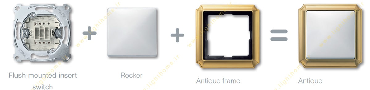 کلید و پریز Schneider Merten - سری آنتیک - نصب به صورت توکار - در سه رنگ طلایی (برنجی طلایی)، برنز(برنجی آنتیک) و بژ - بدنه ساخته شده از آلیاژ برنج با کیفیت ساخت بالا - قابل هماهنگی با فضاهای کلاسیک و سنتی