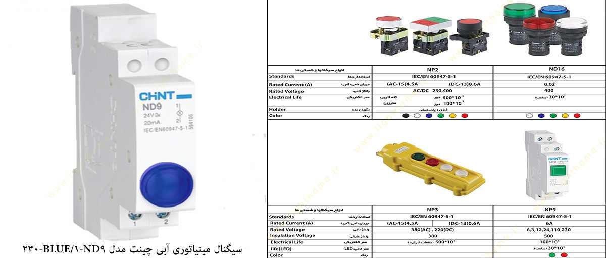 سیگنال مینیاتوری آبی 220 ولت مدل ND9-1/BLUE-230 چینت در کشور چین و کمپانی چینت الکتریک توسط مهندسین برق حرفه ای مطابق استاندارد IEC/EN 60947-5-1 طراحی شده و با استفاده از ماشین آلات نوین تولیدی، برترین تکنولوژی های روز دنیا و مواد اولیه مرغوب ساخته شده است.