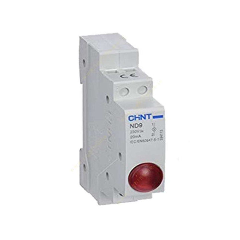 سیگنال مینیاتوری قرمز مدل ND9-1/RED-230 چانت دارای جریان اسمی کمتر از 20 میلی آمپر، طول عمر 30000 ساعت، ولتاژ اسمی 500 ولت و چراغ LED قرمز رنگ است و به منظور نمایش وضعیت خطر یا حالت غیرعادی (Danger) با قابلیت نصب بر روی ریل مینیاتوری DIN REIL استفاده می شود. به طور کلی چراغ های سیگنال مینیاتوری چینت سری ND9 در مدل های تک چراغه و دو چراغه با رنگ بندی های ال ای دی سبز، قرمز، زرد، آبی و سفید تولید شده اند و با ولتاژ نامی 230 ولت برای اعلام وضعیت کاری یا هشدار در دستگاه ها و خطوط تولید به کار برده می شوند.