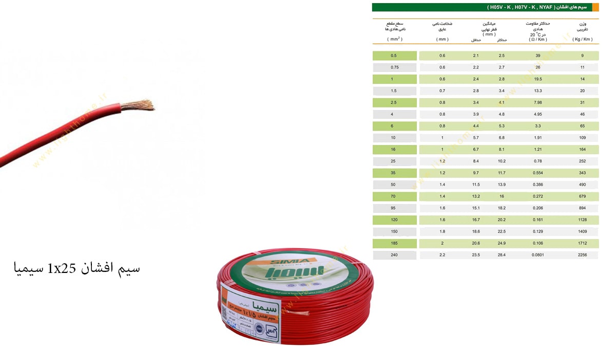 سیم افشان 1x25 سیمیا دارای تنوع زیادی در اندازه و تعداد رشته بوده که همه این مدل ها در سایت لایت هوم قابل دسترس و خریداری است. این سیم توسط شرکت سیمیا تولید و عرضه شده که این شرکت برای داشتن محصولات با کیفیت، خود را مجهز به انواع تجهیزات، برای انجام آزمون های صنعت سیم و کابل بر روی محصولات، کرده است تا از کیفیت آن ها اطمینان حاصل کند. این محصول بسیار پرکاربرد و شناخته شده است، به طور مثال در زمینه های مختلف مانند صنعت ساختمان سازی، تاسیسات و وسایل الکتریکی استفاده می شود. سیم افشان و مفتولی از انواع سیم و کابل سیمیا محسوب می شوند که سیم افشان از تعداد بسیار زیادی رشته های نازک هادی انعطاف پذیر تشکیل شده است و به دلیل پیچش تارها، سیم طول بیشتری دارد و در نتیجه مقاومت الکتریکی آن در واحد طول بیشتر خواهد بود. در حالی که سیم مفتولی فقط از یک رشته ساخته شده و انعطاف پذیری و مقاومت آن نیز نسبت به سیم افشان کمتر است.
