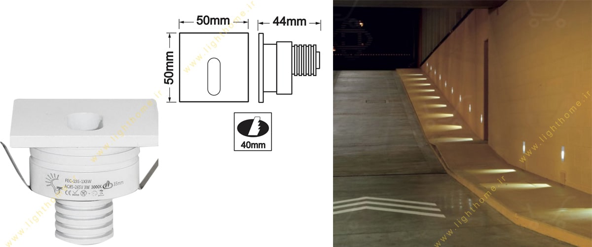 یکی از گزینه هایی که برای نور پردازی راه پله وجود دارد، روشنایی دیوار مجاور پله ها است که از چراغ توکار پاور ال ای دی مدل FEC-19S-3W برای این امر استفاده می شود تا ضمن نور پردازی و کمک هر چه بیشتر به زیبایی محیط، موجب تامین امنیت برای سالمندان و خردسالان در تاریکی شب شود. از این محصول می توان در هر نوع راه پله استفاده نمود این چراغ کنار پله از جنس آلومینیوم ساخته می شود که مقاومت و استحکام بسیار بالایی به چراغ داده است رنگ قاب آلومینیومی این چراغ به رنگ سفید می باشد و همچنین دارای رنگ نور آفتابی می باشد که بسیار گرم و ملایم بوده و برای فضای منزل مناسب می باشد. از این چراغ در هرمکانی اعم از خانه ها، محیط های اداری، مراکز خرید، هتل ها و... می توان استفاده نمود.