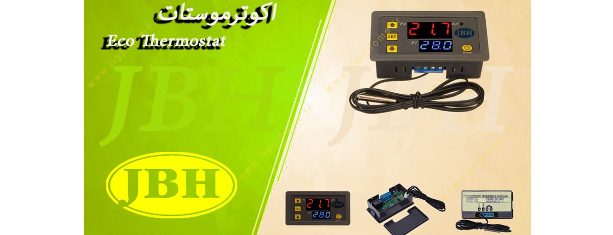 ترموستات اکو JBH از سری تجهیزات مورد نیاز در محیط های بسته به منظور نمایش دما و مقدار تنظیمی آن بوده و همچنین قادر است میزان دما را در دو مد کاری سرمایش و گرمایش بر مبنای دمایی که توسط کاربر تنظیم شده است، کنترل کرده و نشان دهد. ترموستات باعث شده تا بطور مداوم نیاز به تنظیم وسایل سرمایشی و گرمایشی و چک کردن مداوم دما نبوده و در مصرف انرژی نیز صرفه جویی قابل توجهی می شود. امروزه ترموستات یکی از تجهیزات پرکاربرد و ضروری در صنایع مختلف، منازل مسکونی، مجتمع های تجاری و کارخانه جات صنعتی می باشد که می تواند با کنترل دمای محیط و تجهیزات، از بالا و پایین رفتن دما جلوگیری کند.