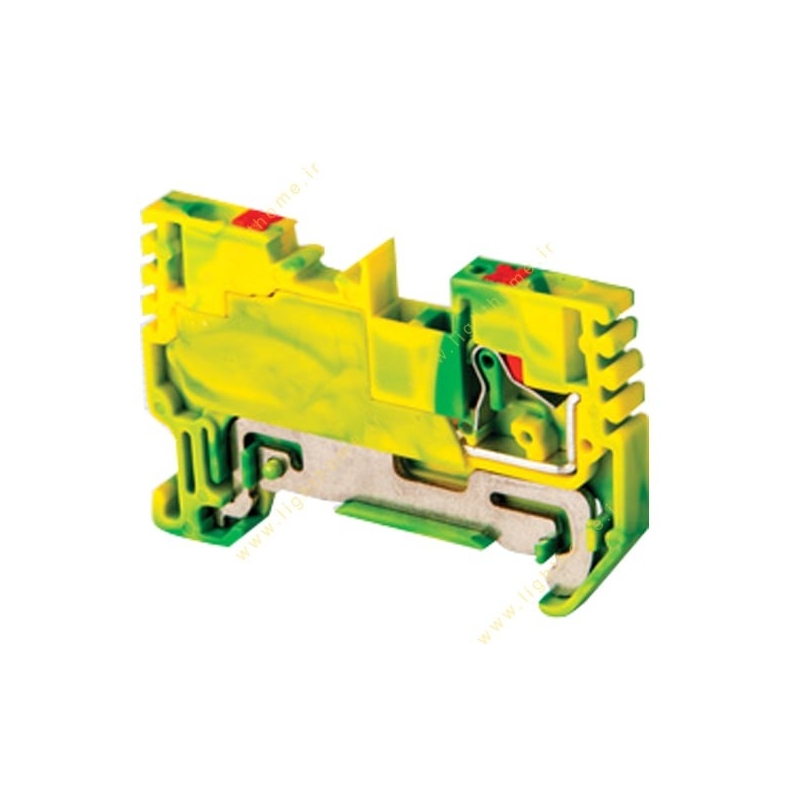 ترمینال ارت فشاری رعد مدل RPET2.5 - میزان ولتاژ لحظه ای 8000 ولت - جنس پلی آمید - مطابق با استاندارد IEC 60947-7-1 - طول بدنه 54 میلی متر - عرض 5 میلی متر - ارتفاع ترمینال نیز 35.7 میلی متر