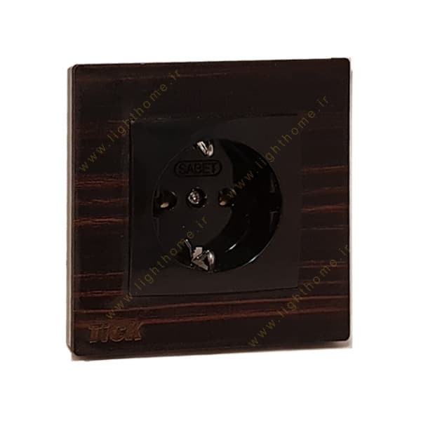 پریز برق ارت دار تیک با قاب چوبی گردویی
