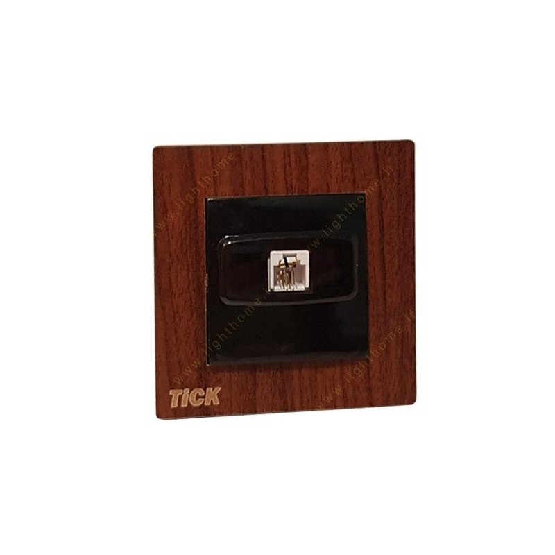 پریز شبکه تیک با قاب چوبی گردویی جهت برقراری ارتباط بین کابل شبکه با سایر تجهیزات دیگر مانند سوئیچ ها، روترها، سرورها و یا کیس کامپیوتر توسط مهندسین توانمند ایرانی در ساختاری ظریف و مدرن مطابق با استانداردهای جهانی و با استفاده از برترین تکنولوژی های روز دنیا طراحی و ساخته شده است و در نهایت با برند تجاری تیک به بازار محصولات داخلی عرضه می گردد. محصول مذکور از قابلیت هماهنگی بالایی با دکوراسیون داخلی چوبی و یا طرح چوب برخوردار می باشد که با بکار گیری انواع مختلف این کلید و پریز لمسی سری چوبی زیبایی چشمگیری را برای مکان های اداری، تجاری، مسکونی و محیط های به ارمغان می آورد.