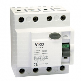 کلید محافظ جان چهار پل 40 آمپر ویکو - مجهز به کلید تست ماهیانه - دکمه روشن و خاموش کلید - محافظت از جان افراد در برابر جریان مستقیم و تماس افراد با قطع برق - درجه حفاظت IP20 - کلید 3P+N - حساسیت محافظ جان 30 میلی آمپر...