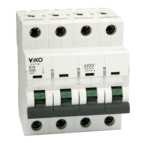 کلید مینیاتوری چهار پل 63 آمپر VIKO تیپ B و C قابل انتخاب – فرکانس 50 تا 60 هرتز - ولتاژ فیوز 400 ولت – دمای کارکرد 5- تا +40+ درجه سانتیگراد – درجه حفاظت IP20 – مجهز به کلید روشن و خاموش – تیپ B مناسب جهت کاربردهای خانگی و روشنایی و تیپ C مناسب مصارف صنعتی - دارای لیبل نشان دهنده قرمز و سبز برای نشان دادن خاموش یا روشن بودن کلید