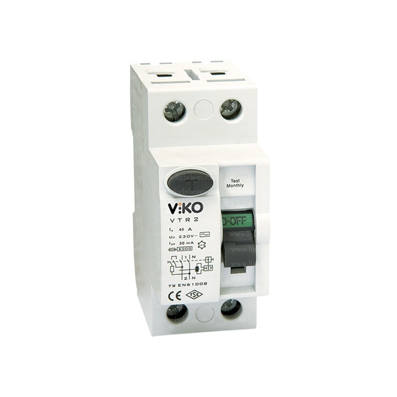 کلید محافظ جان دوپل 32 آمپر ویکو - درجه حفاظت IP20 - دارای کلید ON و OFF - مجهز به کلید تست ماهیانه - دارای حساسیت 30 میلی آمپر برای قطع جریان برق - ولتاژ کلید 230 ولت - قطع کننده جریان در صورت بروز اتصال کوتاه جهت حفاظت از جان افراد