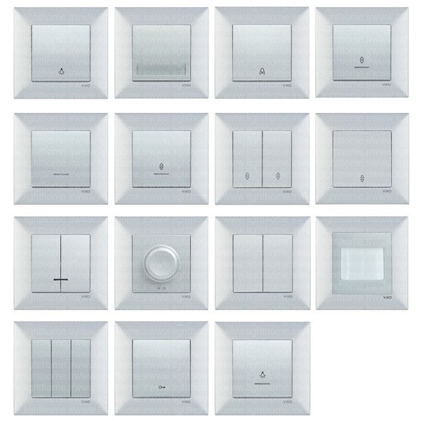 کلید و پریز VIKO سری آرت لاین مدل NOVELLA متالیک - کلید و پریز در رنگ های سیلور ، برنز ، مشکی و آنتراسیت - دارای کادر افقی یک تا شش خانه جهت نصب یکپارچه کلید ها و پریزها
