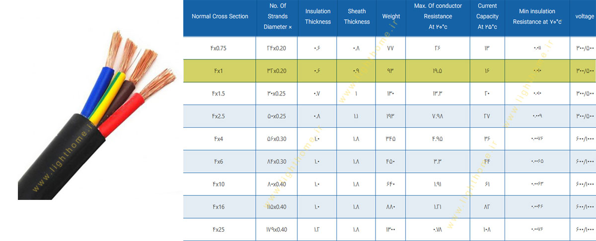 کابل افشان چهار رشته 4x1 مشهد دارای هادی از جنس مس می باشد. لازم به ذکر است که مس از جمله فلزاتی است که وزن بسیار کمی دارد و به موجب همین ویژگی وزن این نوع سیم و کابل نیز در مجموع کاهش پیدا خواهد کرد. فلز مس مزیتهای دیگری مانند مقاومت بالا و قابلیت رسانایی فوق العاده را نیز به همراه دارد. ولتاژ اسمی که با واحد اندازه گیری V مشخص می شود نیز در محدوده 300 تا 500 ولت قرار دارد. بهتر است بدانید این ولتاژ در کابل های بزرگتر از 4x4 برابر 600 تا 1000 ولت است.