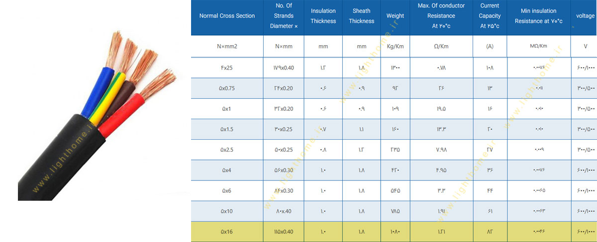 کابل 5x16 افشان مشهد از ولتاژ اسمی استانداردی برخوردار است که واحد اندازه گیری آن ولت می باشد و علامت اختصاری ولت V می باشد. محدوده این ولتاژ در بازه 600 تا 1000 ولت قرار می گیرد. استانداردی با شماره ISIRI(607)53 , ISIRI 3569, IEC 60227, IEC 60502 در جهت تولید این کابل افشان ایرانی به کار گرفته شده است. بهتر است بدانید در انواع سیم و کابل افشان کلاس هادی طیف بین 2 تا 5 را در برمی گیرد.