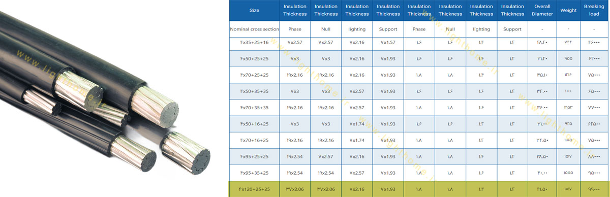 کابل 4x120+25+25 خود نگه دار مشهد معمولا با استفاده از عایق XLPE (پلی اتیلن) ساخته می شود. با وجود این عایق مقاوم و کاربردی که از نوع کراسلینک شده می باشد، خطر اتصالی بین رشته ها نیز از بین خواهد رفت. لازم به ذکر است ولتاژ اسمی نیز در این نوع کابل های خود نگهدار عددی بین 600 تا 1000 ولت می باشد. این میزان ولتاژ اسمی برای کارکرد مناسب سیم و کابل خود نگهدارنده ضروری به شمار می رود. ابعاد این محصول که بر اساس استاندارد تعیین شده است، در عنوان قابل مشاهده می باشد.