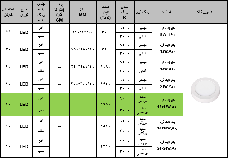 اگر قصد خرید چراغ SMD روکار سه حالته 12+12 وات گرد زاک را دارید یا می خواهید از قیمت چراغ روکار SMD گرد 12+12 وات سه حالته زاک اطلاع یابید به فروشگاه اینترنتی لایت هوم مراجعه نمایید.